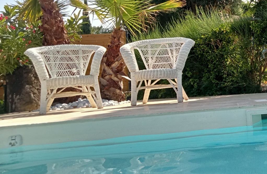Chambres d’hôtes de caractère où vous pourrez séjourner en toute tranquillité. Les 5 chambres sont chacune pour 2 personnes. L’une des chambres (Love Room Baobab) dispose d’un jaccuzzi et d’un sauna privatifs. Profitez d’un moment de détente à la piscine, ou bien dans le jardin aménagé. Vous trouverez tout le confort possible pour une escapade réussie. Idéal pour un séjour en couple. La piscine dispose de transats avec parasol. “Vous avez la possibilité de bronzer avec ou sans traces de maillots au bord de la piscine”. Un terrain de pétanque ainsi qu’une table de massage sont à votre disposition. Les propriétaires peuvent vous donner les contact de masseurs professionnels. Vous pourrez également découvrir l’art et l’artisanat malgache dans la boutique de madame. ATTRAITS TOURISTIQUES : Cap d’Agde, Marseillan, Sète, l’étang de Thau (parcs ostréicoles), Béziers, Pézenas, Canal du Midi, sports nautiques, plages. – “Love Room” avec jacuzzi et sauna : chambre de 25m² avec lit 160×200. Climatisation réversible. Salle d’eau avec douche à l’italienne. Toilettes privatifs et indépendants de la salle d’eau. Petite terrasse privative. La chambre bénéficie d’une entrée indépendante. Luminothérapie.