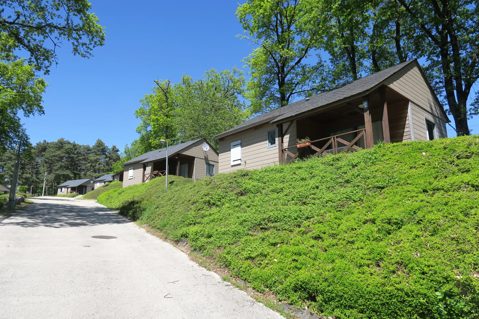 – 12 chalets de 2 chambres de 2 a 6 personnes , dont 1 PMR, avec terrasse couverte, four micro-ondes, lave-vaisselle, télévision et chauffage