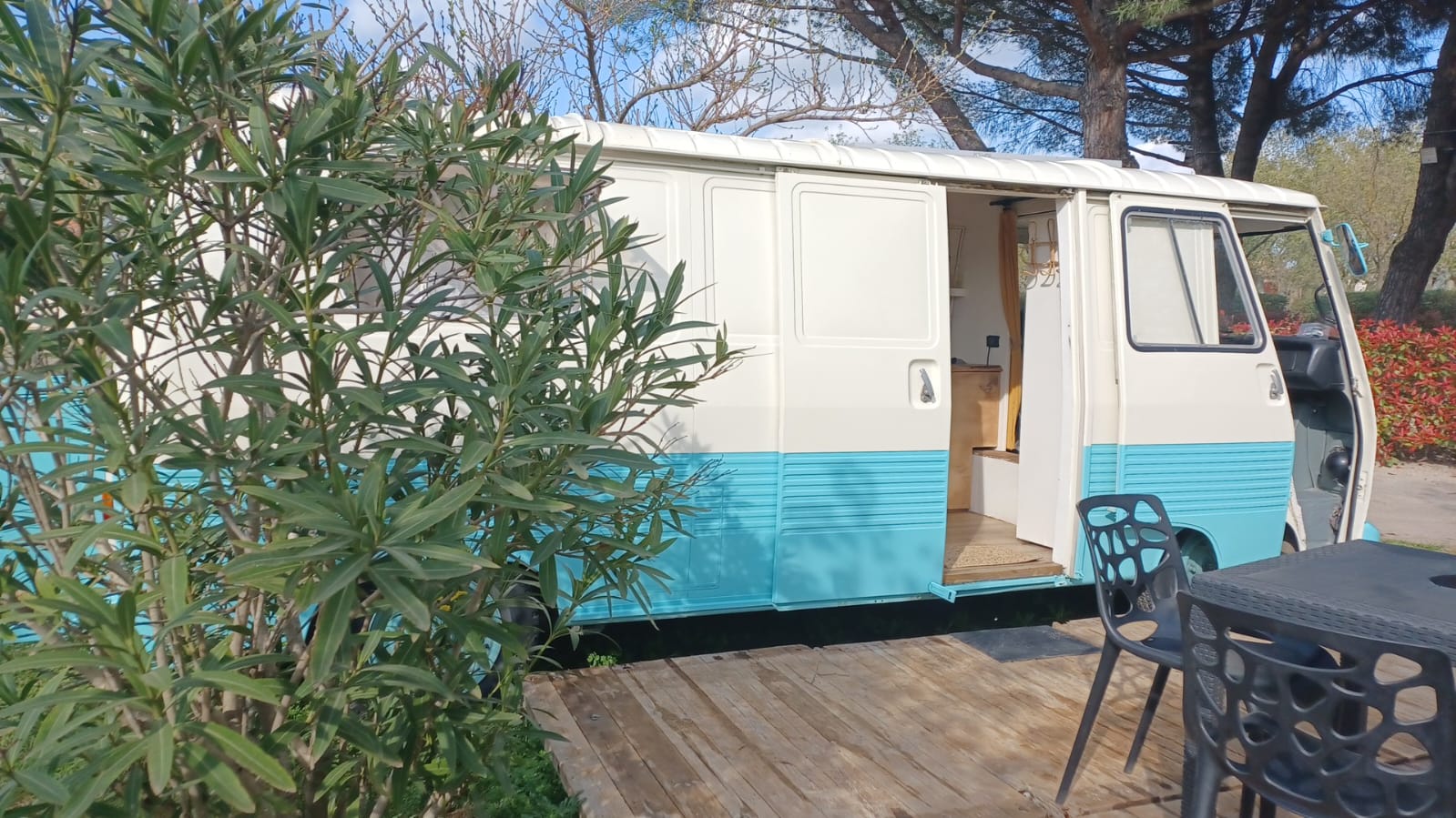 Van de collection Peugeot J7 pour 2 à 3 personnes, cocooning bohème pour un séjour original et déconnecté au camping Lou Vincen.