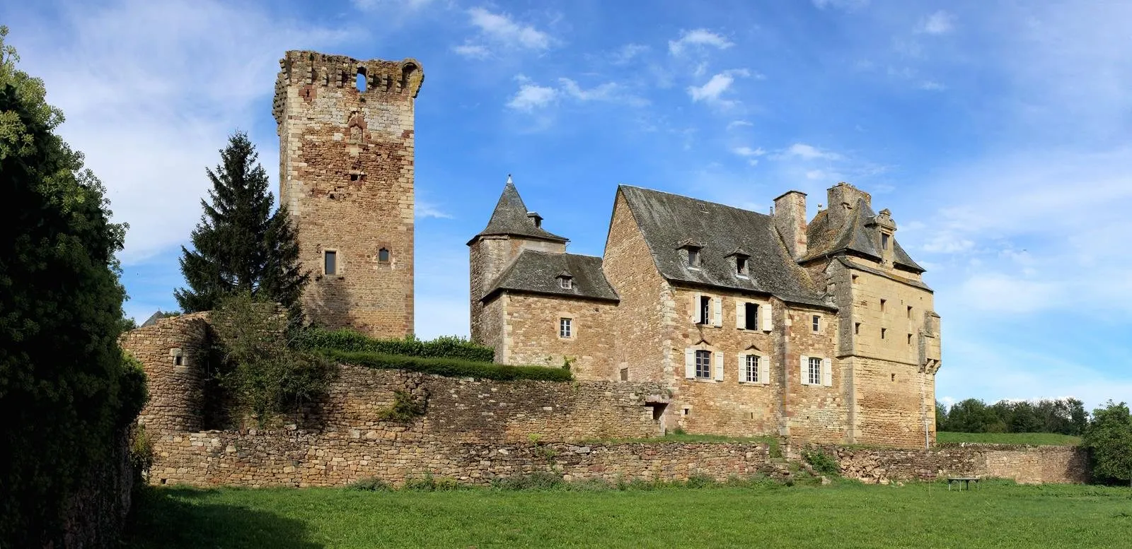 Visite guidée en été du château médiéval de Tholet, sur toute sa hauteur. Ce château fort du XIVème siècle, devenu manoir à la Renaissance, puis ferme au XIXème siècle, témoigne du passé féodal et agricole du Rouergue, dans un environnement préservé.