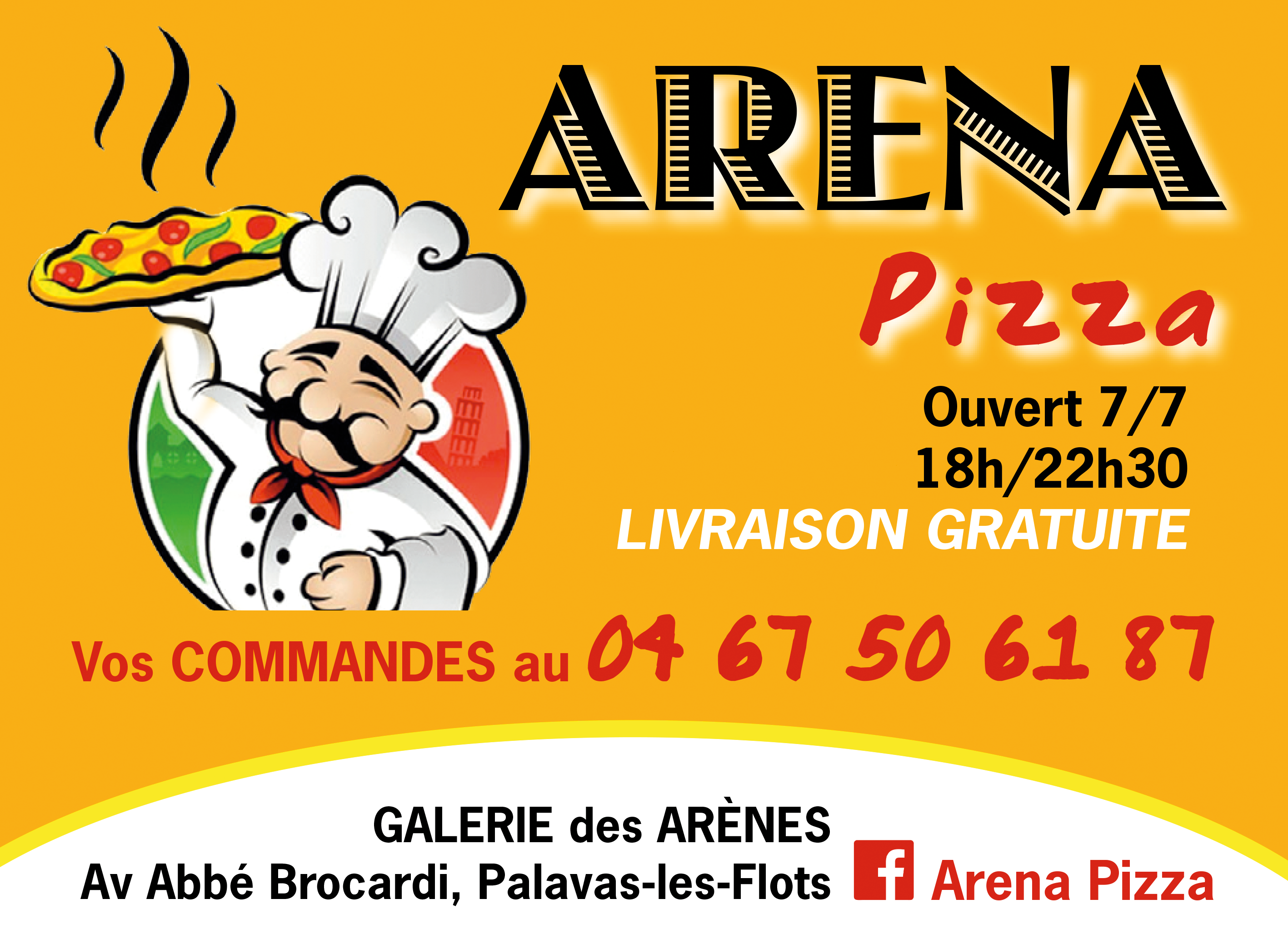 Arena Pizza à Palavas‑les‑Flots propose des pizzas généreuses et variées, au bon rapport qualité‑prix, dans un cadre simple avec service à emporter ou en livraison.