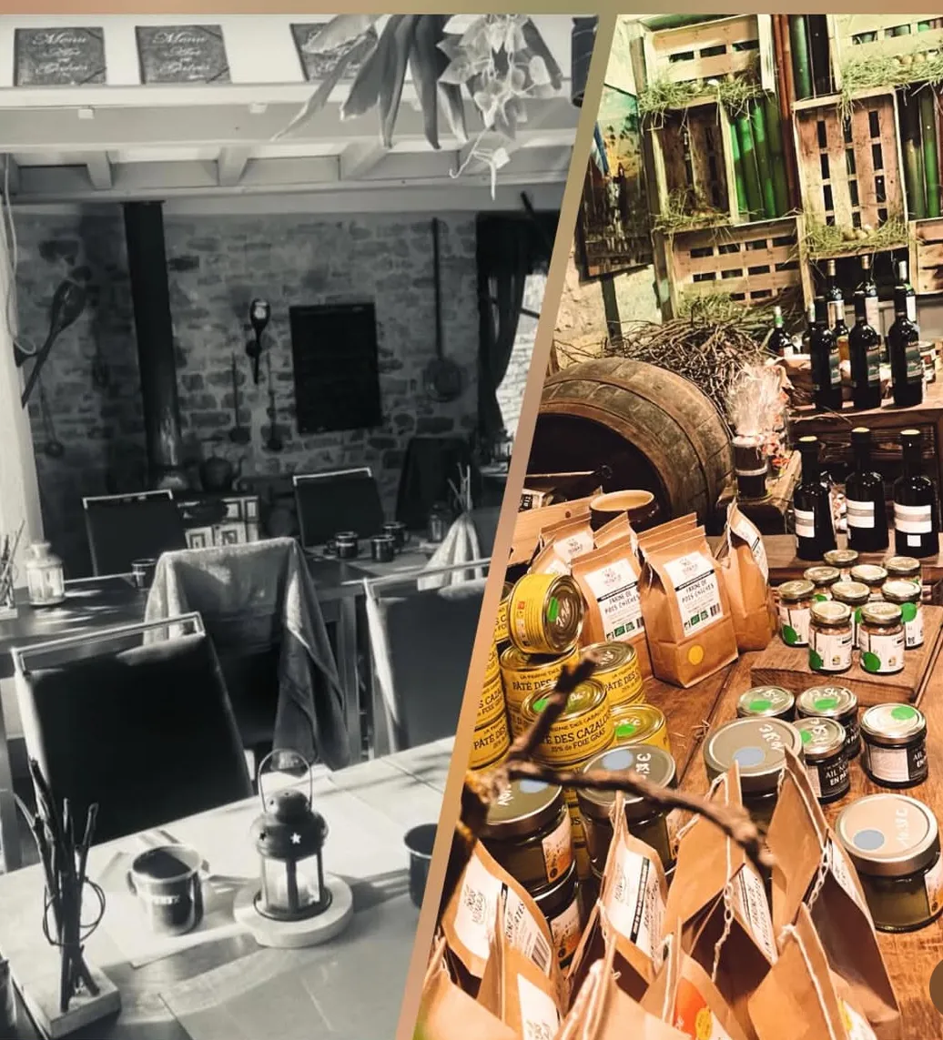 Un lieu où la passion et la créativité s’exerce librement, offrant à chacun une expérience culinaire inoubliable. L’été, vous pourrez profiter d’une belle terrasse ombragée, où le chant des oiseaux se mêle à l’odeur des plats savoureux, et l’hiver, appréciez notre salle chauffée, entièrement au feu de bois, créant une atmosphère douillette et réconfortante. Notre ambiance se veut chaleureuse et authentique, mettant en avant des plats faits maison tels que le boeuf à la braise, la soupe à l’oignon, la truite délicatement fumée et la coppa de boeuf réalisée sur place par nos soins, ainsi que le magret à la flamme, le foie gras au café d’orge, et bien d’autres délices. Nous embrassons un esprit terroir et original à la fois, où la cuisine de nos ancêtres renaît dans ces lieux chargés d’histoire. Toute notre carte est entièrement produite sur place avec des produits frais et bruts, sourcés localement pour garantir qualité et authenticité. Cuisine maison au feu de bois, engagée et responsable, qui célèbre le goût véritable et la convivialité, invitant chacun à se rassembler autour d’une table riche en saveurs et en émotions.