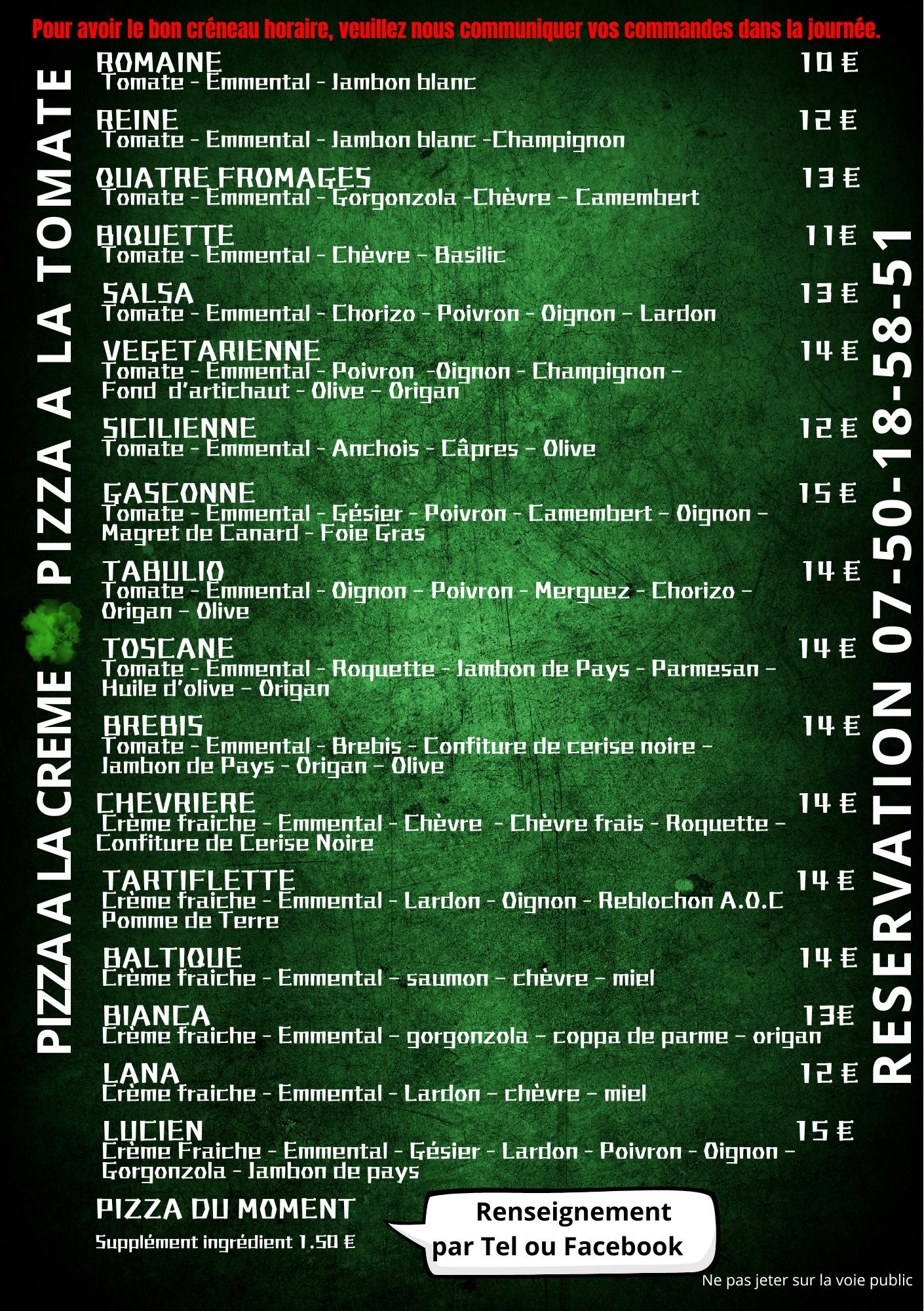 Retrouvez vos délicieuses pizzas tout au long de la semaine :