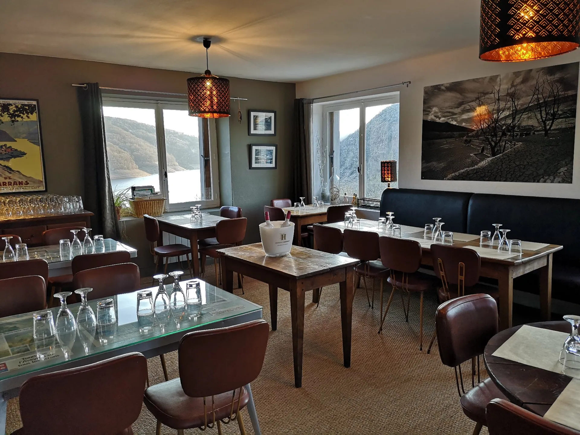 Terrasse du restaurant à découvrir derrière le bar ou dans le salon coté lac si la météo est incertaine.