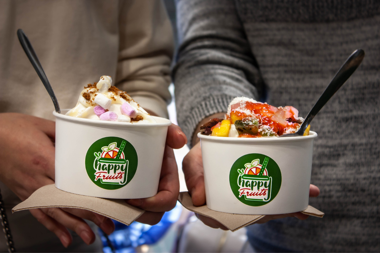 Happy Fruits – Yogurt Glace Artisanal – Milkshake – Smoothies – The place for VERY gourmets – Seasonal cuisine at all times – Dishes cooked Direct from the Farm “GERS” – Fresh salad – Fresh produce from the Occitanie region and quality – Our frozen yogurts are made by us in collaboration with the farm Buisson Blanc – BIO and Tarn Flavours.