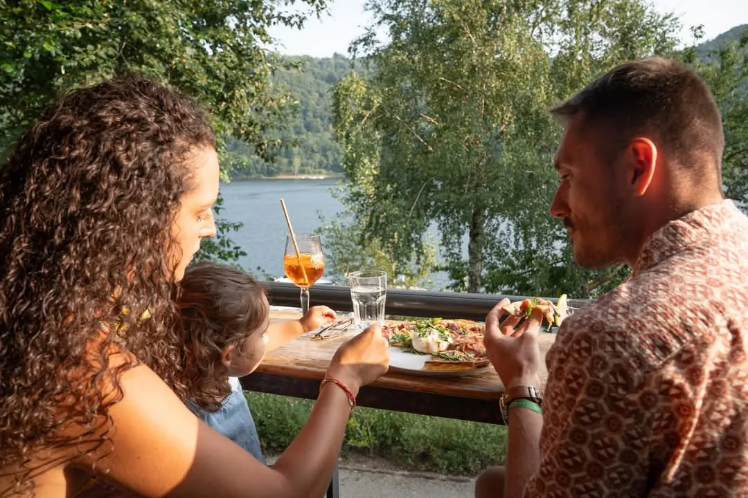 Une belle salle ouverte sur le lac pour se régaler en toute convivialité, une terrasse en journée pour se rafraîchir. Notre Bar-Restaurant estival vous propose : pizzas faites maison, burgers, salades, plats et viandes locales, cocktails et apéritifs