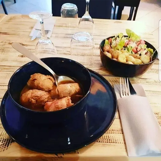 – Tripoux, salade, tomate, oignon et petites pommes de terre grenaille en persillade,