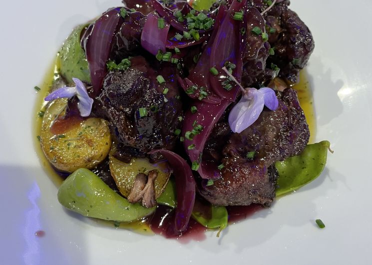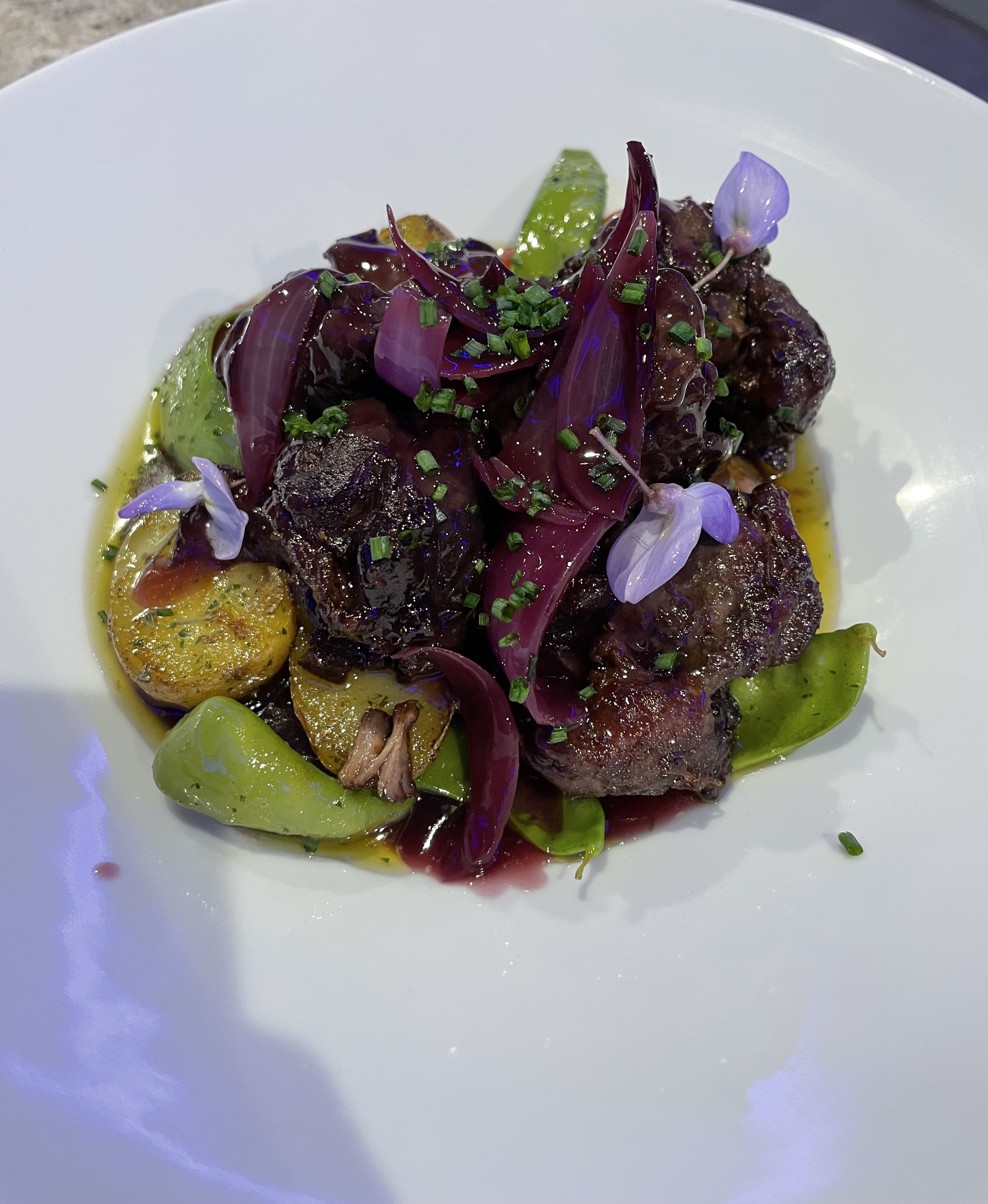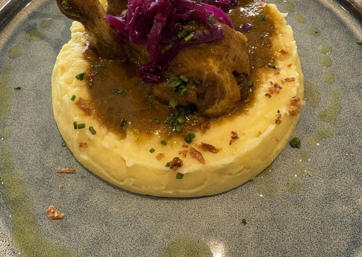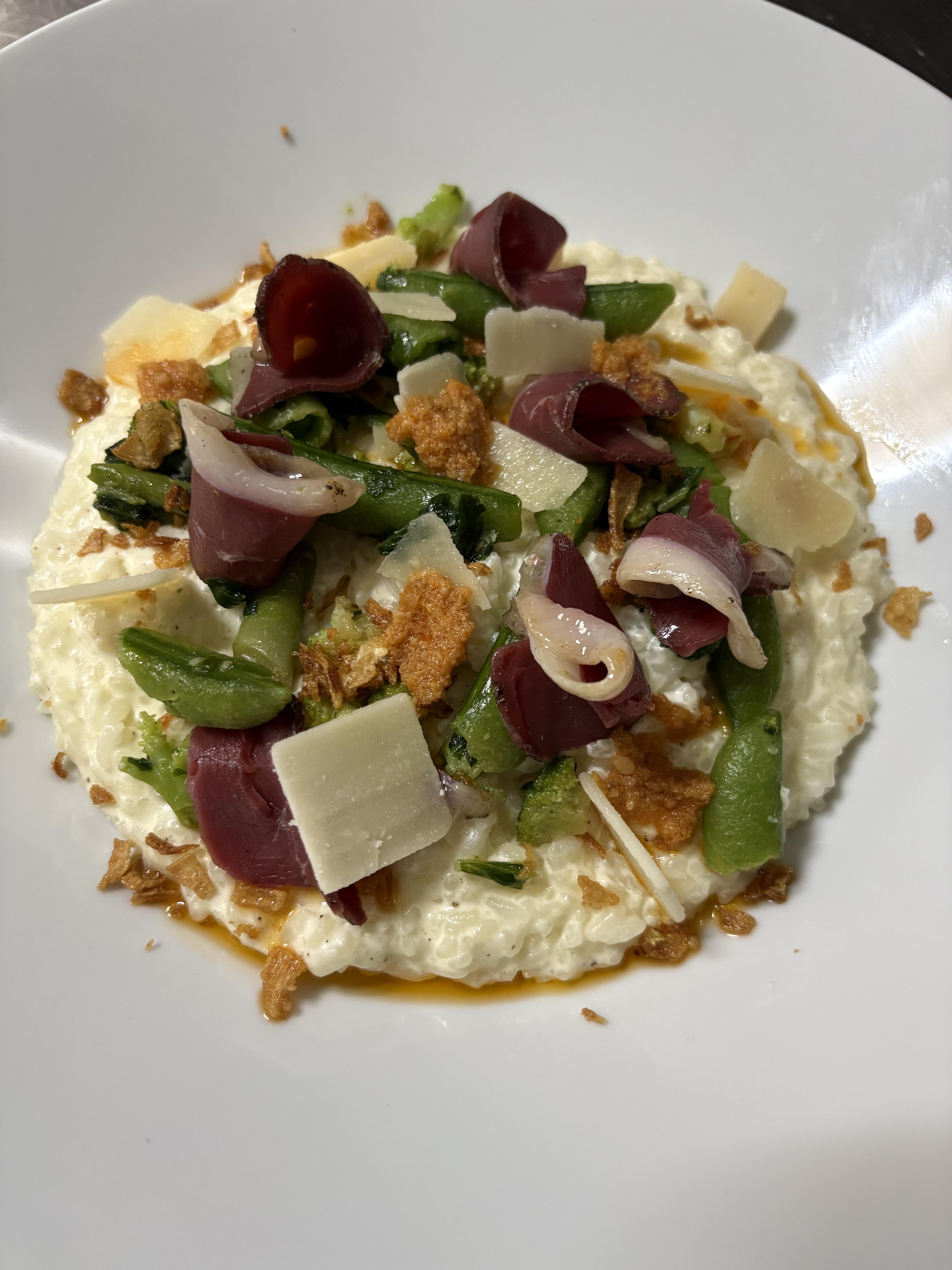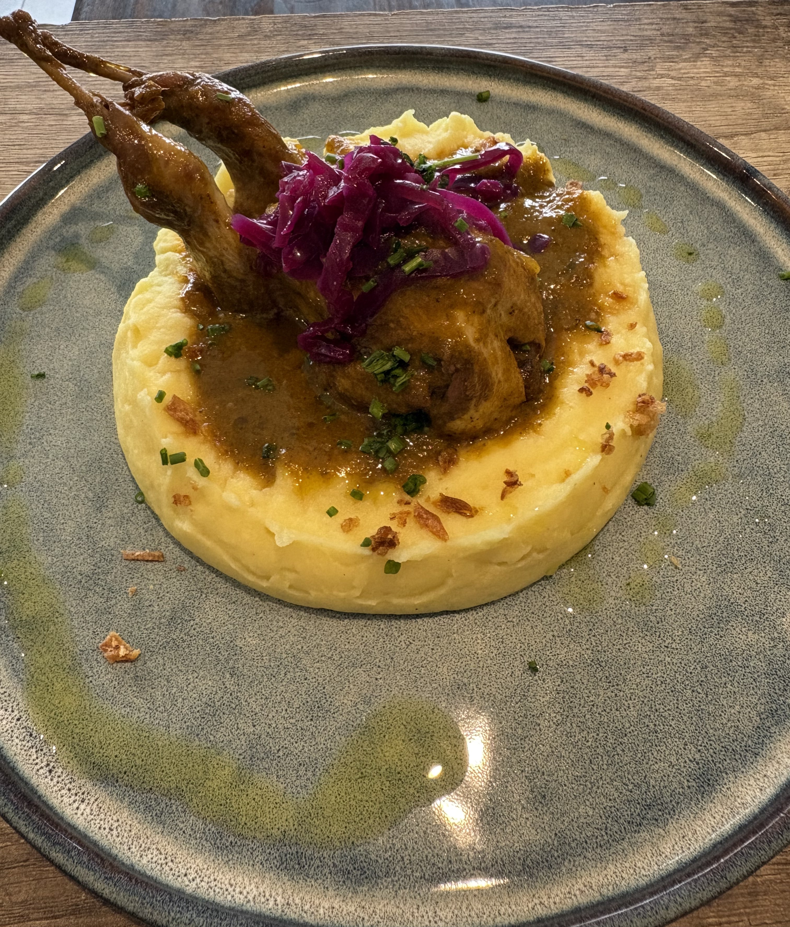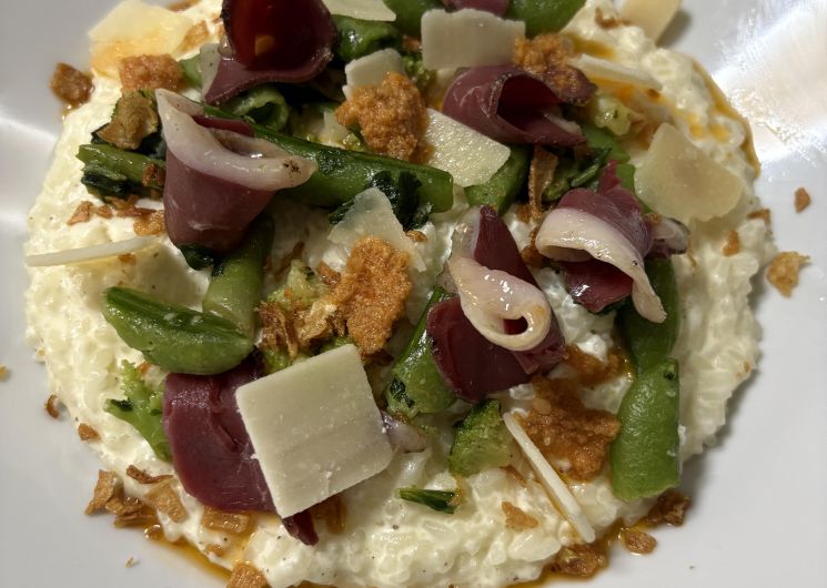 Terrasse ombragée. Produits de saison du marché ainsi que des commerçants locaux et producteurs.
