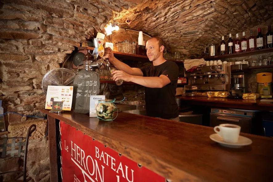 Différentes bières à la pression et une sélection de vins locaux et régionaux sont servis dans ce resto à l’esprit guinguette.