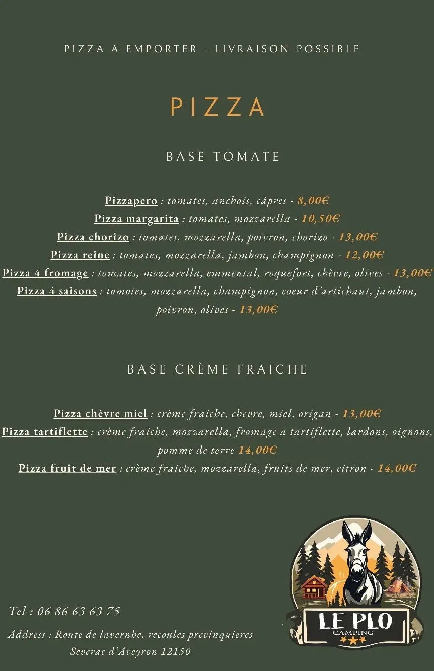 Le resto du Plô vous régale toute l’année avec une cuisine généreuse et savoureuse. Au menu : pizza, burger maison, entrecôte, magret de canard, truffade traditionnelle, aligot préparé avec soin… Que ce soit pour un repas entre amis, en famille ou un événement spécial, venez profiter d’une cuisine faite avec passion dans un cadre convivial. Sur place ou à emporter, laissez-vous tenter.